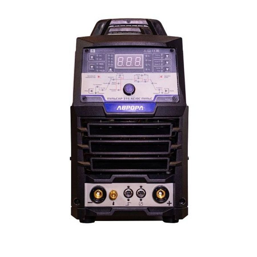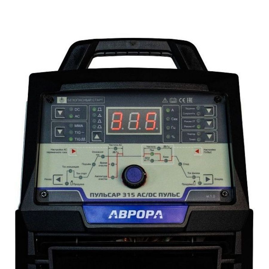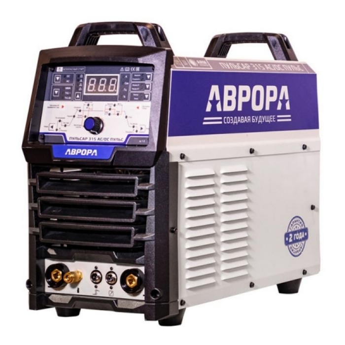 Аппарат АВРОРА Пульсар 315 AC/DC ПУЛЬС трёхфазный источник аргонодуговой сварки предназначен для профессиональной импульсной сварки постоянным и переменны током TIG AC/DC и полноценной сварки штучным плавящимся электродом MMA. В распоряжении сварщика имеется весь спектр необходимых настроек для работы со сталью, в том числе нержавеющей, алюминием, медью, титаном и прочими металлами. Технология безопасный старт. Пульсар оснащён принципиально новой системой возбуждения дуги. На аппарате нет осциллятора, вместо него используется электронный блок поджига. Система безопасного высоковольтного старта облегчает начало процесса и снижает помехоэмиссию. Пульсар 315 AC/DC ПУЛЬС безопасен для сложной электроники, станков ЧПУ, промышленных компьютеров и пр. На удобной, понятной любому сварщику циклограмме отдельно настраивается режим ПУЛЬС и регулируется каждая стадия сварочного процесса для выполнения максимально широкого круга сварочных задач. Управление сварочной дугой обеспечивается современным микропроцессором на платформе ARM, что гарантирует высокоточную настройку, контроль и стабильность сварки. Электроника Пульсар позволила добиться увеличения быстродействия обратных связей аппарата. Это значит, что дуга в каждый момент времени отслеживается с большей частотой и лучше управляется. Режим Холодной сварки (Cold TIG) - частный случай режима сварки точками. В аппаратах Пульсар данный режим реализован функцией ПОВТОР - это цикличный режим, в котором сварщик задаёт необходимое значение сварочного тока и время действия сварочной дуги, а также время паузы между точками, когда сварочная дуга полностью гаснет. За счёт ударного импульсного воздействия тока достигается хорошее проплавление, а краткое время сварки препятствует ослаблению металла. Функция ПОВТОР или режим Холодной сварки работает на АВРОРА Пульсар 315 AC/DC ПУЛЬС как на постоянном (DC), так и на переменном (AC) токах. Настраиваемые параметры: Настройка переменного тока: Настройка режима ПУЛЬС: Технические особенности: Комплектация: