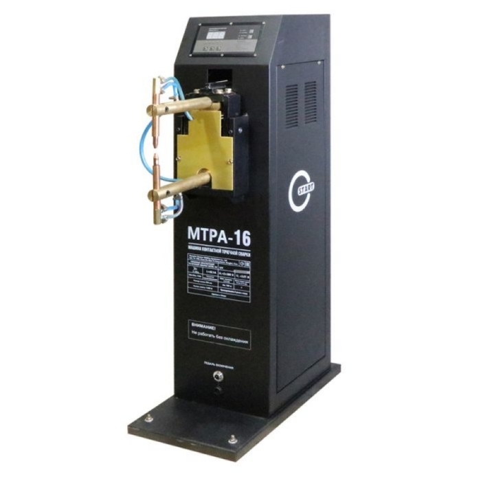 Машина точечной сварки START МТРА16 - конструкция с пневмоприводом, радиальным ходом электрода и микропроцессорным контроллером режимов сварки. Предназначены для мелкосерийного и серийного производства. Контроллер позволяет бесступенчато регулировать: сварочный ток, время сварки, время спада тока. Пневмопривод позволяет быстро и без особых усилий производить сварку изделий.