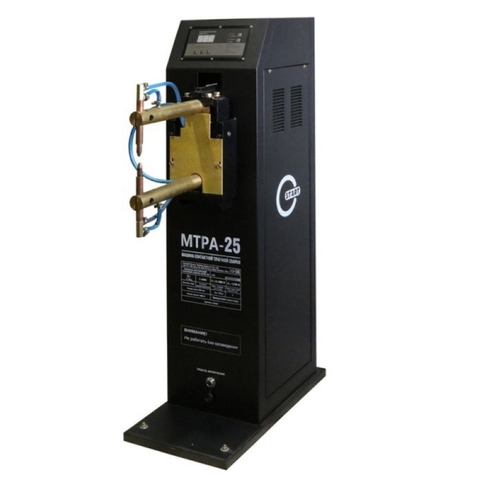 Машина точечной сварки START МТРА25 - конструкция с пневмоприводом, радиальным ходом электрода и микропроцессорным контроллером режимов сварки. Предназначены для мелкосерийного и серийного производства. Контроллер позволяет бесступенчато регулировать: сварочный ток, время сварки, время спада тока. Пневмопривод позволяет быстро и без особых усилий производить сварку изделий.