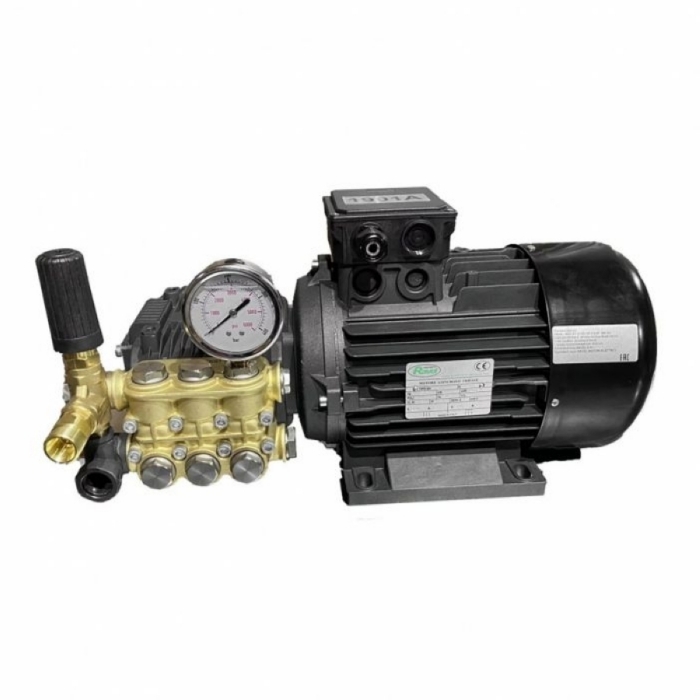 Насос BM 12.18 N-1 обеспечивает рабочее давление до 180 бар и подачу воды на уровне 12 л/мин, что делает его отличным выбором для очистки оборудования, фасадов, транспортных средств и для других задач, требующих высокой мощности. В комплект входит трехфазный электродвигатель RAVEL мощностью 4,0 кВт с частотой вращения 1450 об/мин, напрямую соединенный с помпой, что снижает потери мощности и повышает надежность системы.