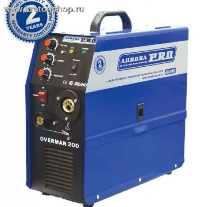 Сварочный инвертор AuroraPRO OVERMAN 200 - предназначен для полуавтоматической сварки в среде защитного газа MIG-MAG. Благодаря продолжительному режиму работы на максимальных токах аппарат прекрасно подходит для работы как на бытовом так и на профессиональном уровне. В гараже, в автосервисе, на производстве - везде ОВЕРМАН 200, будет проявлять себя прекрасным и надежным помощником в деле. Overman 200 показал неплохие результаты при работе с алюминием. Мы рекомендуем этот аппарат для бытовой и полупрофессиональной сварки данного металла. Нагляное управление всеми важными параметрами сварки на лицевой панели позволит настроить полуавтомат для выполнения широкого спектра сварочных работ. Отдельным плюсом аппарата является возможность сварки в сетях с большими просадками питающего напряжения - OVERMAN 200 способен работать при падении напряжения до 140 вольт.