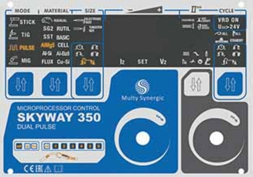 Aurora PRO SKYWAY 350 DUAL PULSE предоставляет сварщику возможность настроить аппарата для работы в ручном или синергетическом режиме. Возможность работы в режиме MIG PULSE и DUAL PULSE – для сварки большинства металлов. Особенно востребован режим PULSE будет для работы с алюминием и его сплавами. режим пульса удалит оксидный слой с поверхности алюминиевых деталей и добиться глубокого проплавления металла. Режим DUAL PULSE позволит работать с еще меньшим тепловложением, что особенно актуально для длиных швов и тонких материалов. Функция TIG DC реализованная на аппарате, даёт сварщику возможность выполнять швы на минимальных токах, для «ювелирного» исполнения шва. Также, можно использовать аппарат в качестве источника тока TIG PULSE