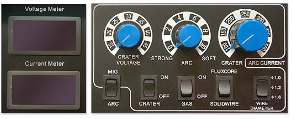 Два цифровых дисплея для отображения настроек и контроля сварочного процесса |