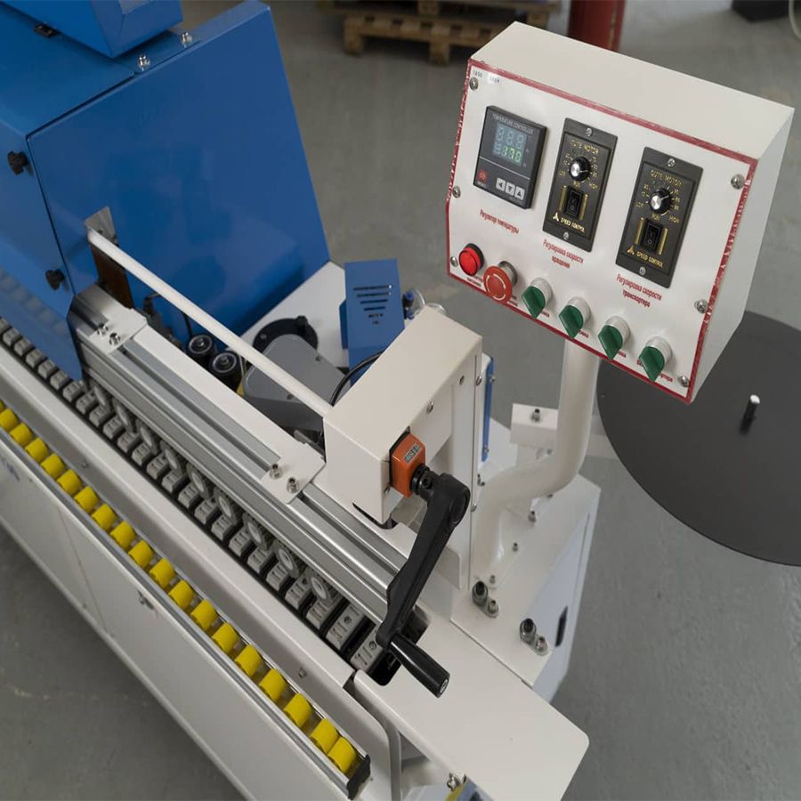 Приклеивание ведется при автоматической подаче заготовки.