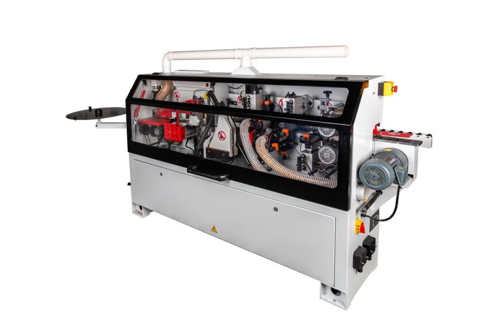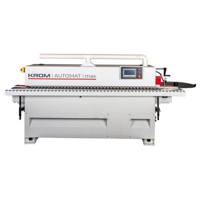KROM AUTOMAT MAX оснащен всеми основными узлами для достижения отличного результата кромкооблицовки. Станок приклеивает кромку, обрубает ее от бобины, торцует в чистовую передние и задние свесы за счет одномоторной торцовки, фрезерует сверху и снизу по длине детали, циклюет радиуснои? циклеи? и полирует в финале. Отдельно хотелось бы отметить узел прифуговки, установленныи? в самом начале станка. Его задача - это предварительное фрезерование торца детали. Именно с его помощью можно достичь максимального качества кромкооблицовки, устранив недостатки раскроя, такие как сколы или ступенька от подрезнои? пилы. Управление через тачскрин на русском языке.
