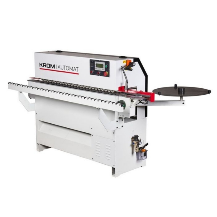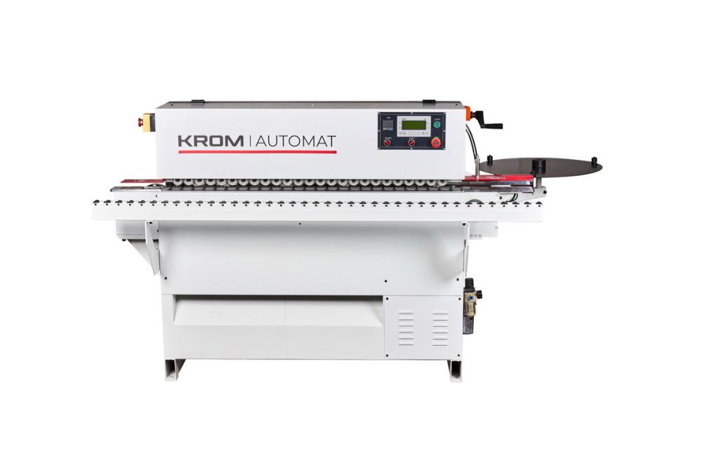 KROM Automat - это компактный автоматический кромкооблицовочный станок полного цикла. Т.е после приклеивания детали нет необходимости в какой-то ручной доработке. Станок приклеивает кромку, предварительно отрубая ее от бобины, фрезерует по длине (одновременно сверху и снизу), в чистовую торцует кромку заподлицо с деталью и в финале полирует. Высокое качество комплектующих и сборки. Компактный размер позволит установить станок в относительно небольшом помещении. Все проданные станки данной серии продемонстрировали отличное качество кромкооблицовки. Станок хорошо держит настройки, а при необходимости легко перенастраивается между различными вариантами кромки.