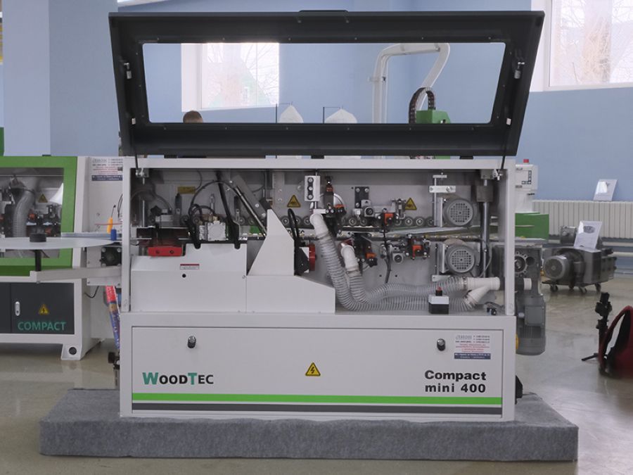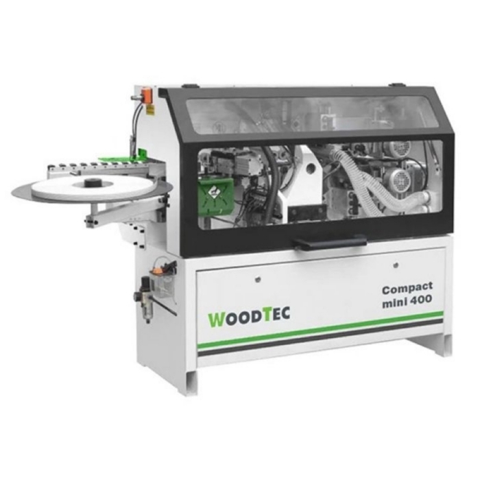 Автоматический кромкооблицовочный станок WoodTec Compact mini 400 — предназначен для облицовывания прямолинейных кромок плитных материалов рулонными кромками АБС, ПВХ и полосовым кромочным материалом толщиной до 3 мм..
