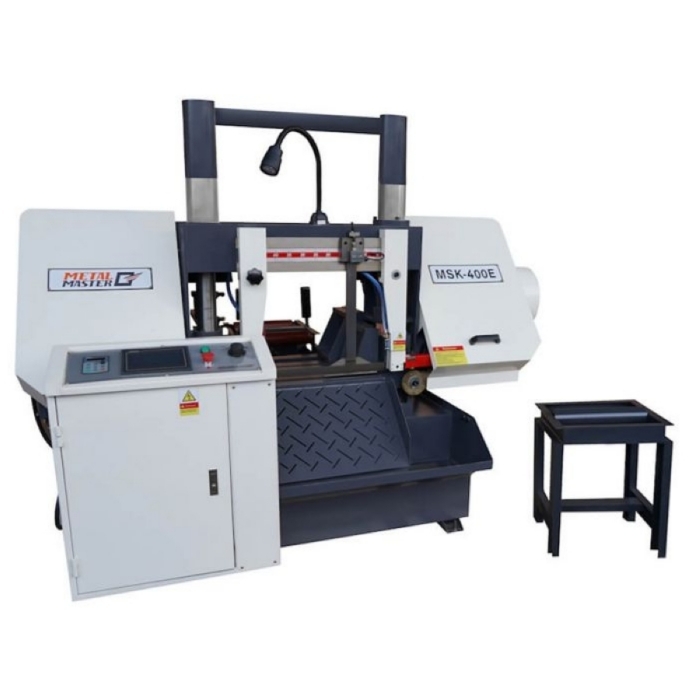 Автоматический двухколонный горизонтальный ленточнопильный станок Metal Master модели MSK-400E создан конструкторами для обработки заготовок из черных и цветных металлов в автоматическом режиме при помощи системы ЧПУ. Эта ленточная пила по металлу служит для промышленной резки разнообразных типов проката, таких как: - трубы, уголки, профили, швеллеры, рельсы и прочие крупногабаритные изделия до 300 мм. Автоматика позволяет выполнять все операции на станке практически с минимальным участием оператора. Программное управление позволяет настроить автоматическую подачу и резку заготовок необходимой длины. Согласно инструкции оператор может ввести до 5 программ исполнения. Номенклатура обрабатываемых изделий, автоматический режим работы и высокая производительность делают этот ленточнопильный станок Metal Master MSK-400Е востребованным в различных современных производствах. Производитель дает гарантию на бесперебойную работу оборудования сроком на 1 год с последующим постгарантийным обслуживанием.