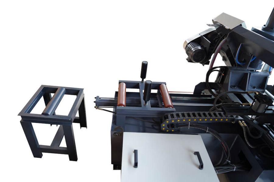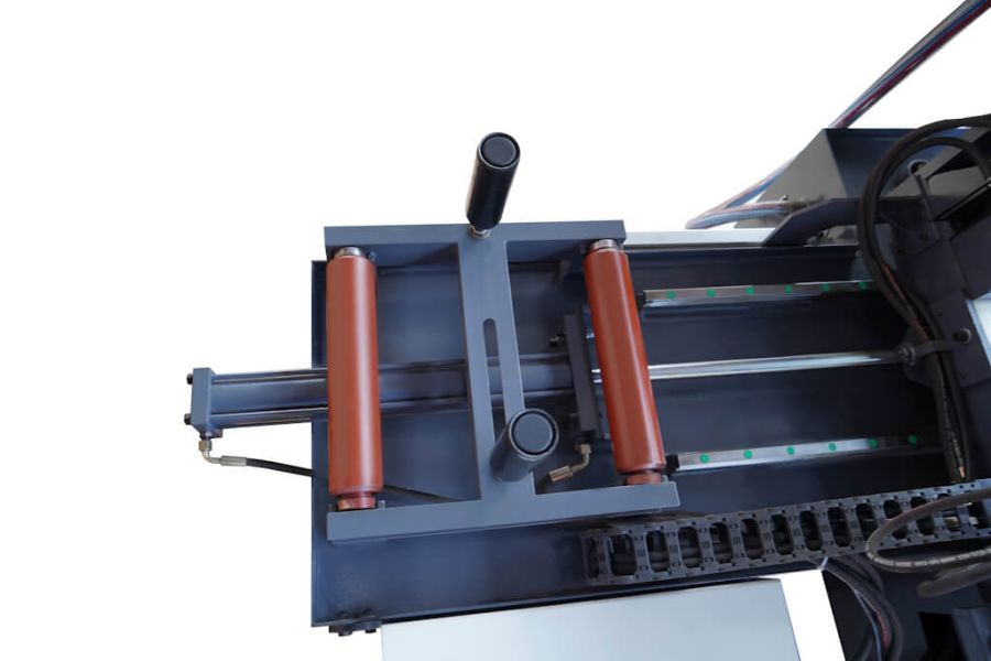 - Вспомогательный стол с роликом для подачи длинных заготовок;