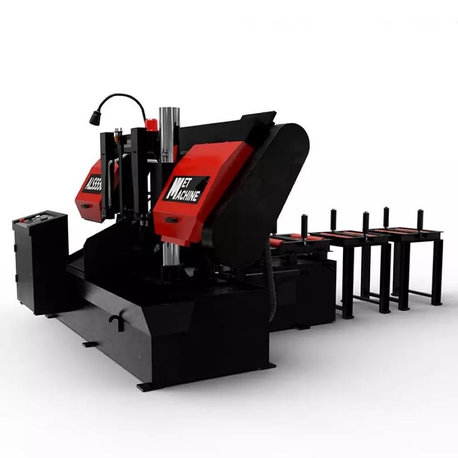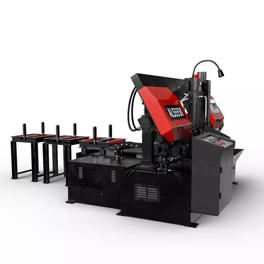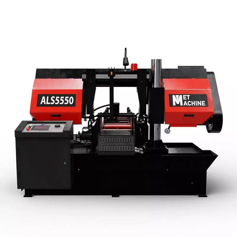 Автоматический ленточнопильный станок MetMachine ALS5550-NL0ST0 используют для резки разных типов заготовок из металлов, пластмасс, графита, теплоизоляции под углом 90°. Модель с асинхронным двигателем мощностью 5.5 кВт, для работы станка нужно подключение к сети напряжением 380В. С новой маркировкой и набором опций. Буква N в названии — частотный преобразователь, L — стандартный пакетный рез, S — конвейер для уборки стружки, T — гидравлическое натяжение полотна с манометром.