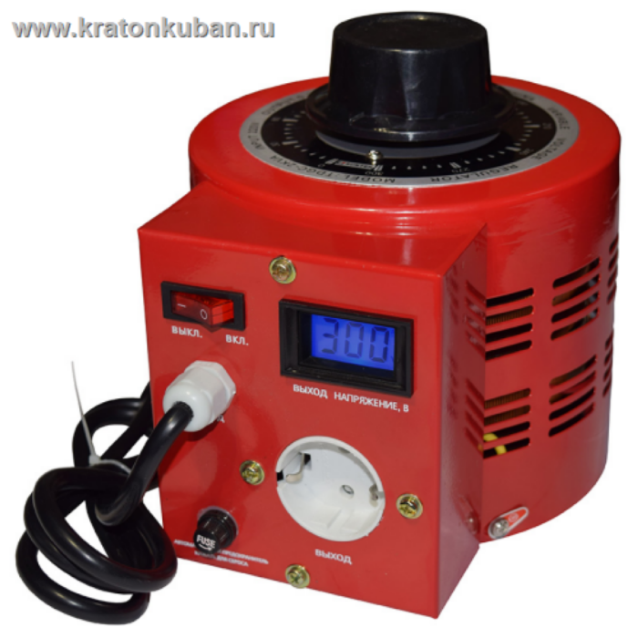 Автотрансформатор ЛАТР Suntek 2000ВА 8А - однофазный прибор с ЖК-табло, позволяет получить на выходе напряжение от 0 до 300 Вольт. Напряжение питания - 220 Вольт 50-60 Герц. Номинальный ток 8 А.
