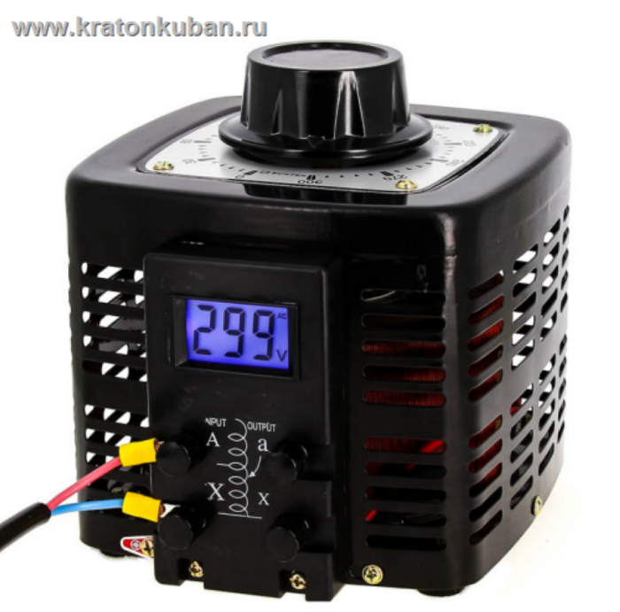 Автотрансформатор ЛАТР Suntek 2000ВА отличается отображением показаний выходного напряжения на жидкокристаллическом (ЖК) табло (информативно и точно), плавным ходом ручки-регулятора, удобным креплением входных и выходных проводов, качеством сборки.