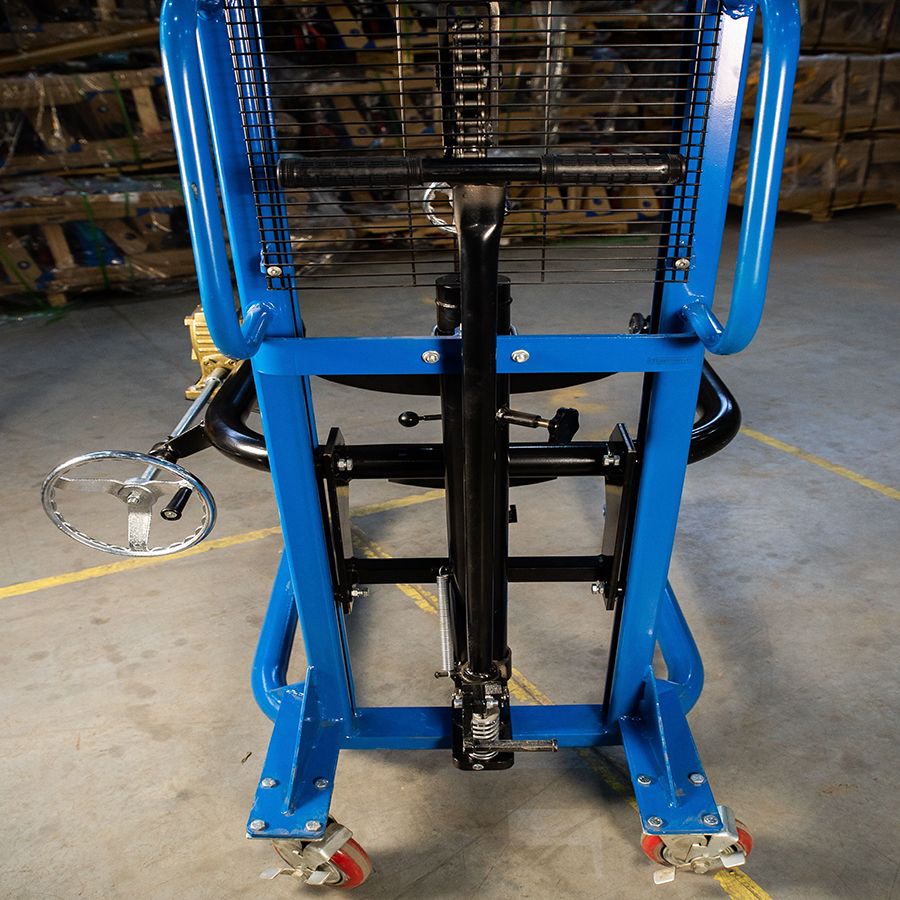 Бочкокантователь гидравлический TOR COT 350 кг, 1400 мм - это специальный штабелер, сделанный для поднятия, перевозки и кантования (наклона, переворота) бочек. Модель оснащена надежным держателем бочек и червячным ручным редуктором для переворота бочки. Штабелер простой в обращении и не прихотлив в обслуживании. Максимальный вес бочки может быть 350 кг, что в принципе покрывает практически все материалы, тарированные в бочки. К минусам данной модели можно отнести лишь то, что бочку брать и ставить мы можем только с ровных площадок: пол, полки. С помощью этого штабелера не получиться работать с бочками с паллет. Высота подъема в 1.4 метра позволяет ставить бочки в 2 яруса..