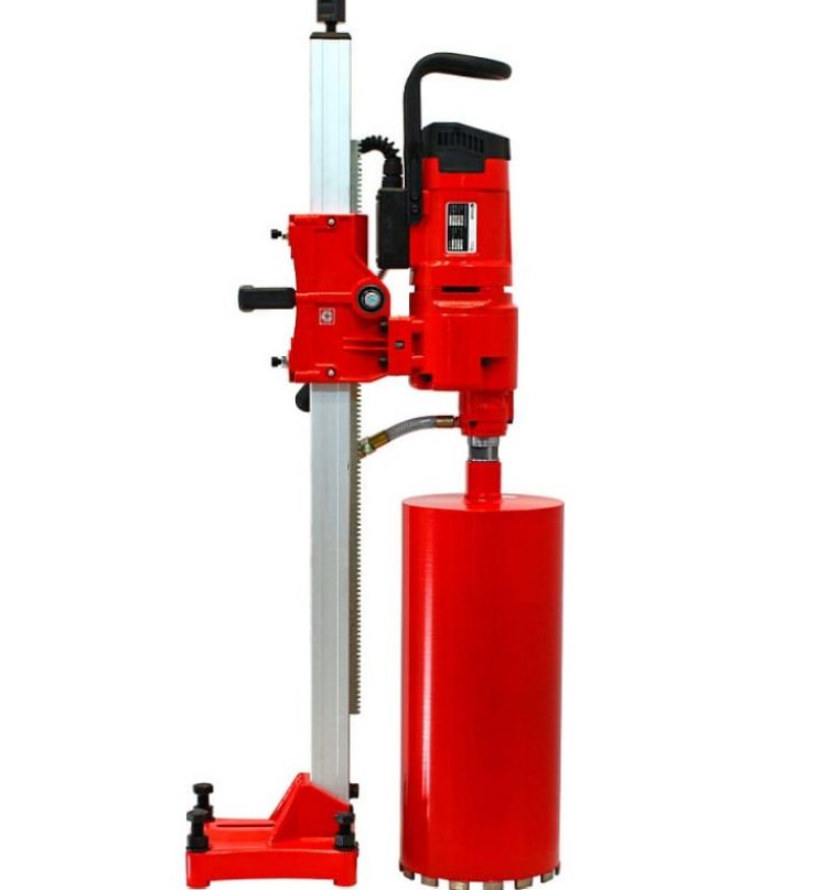 Сверлильная установка снабжена механической фрикционной муфтой, которая предотвращает заклинивание коронки в бетоне.