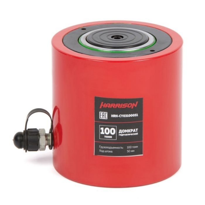 Домкрат грузовой гидравлический Harrison HRH-CY03100051, 100 тонн предназначен для подъема и перемещения грузов при проведении монтажно-демонтажных работ в различных отраслях промышленности. Обладают повышенной грузоподъемностью и продолжительным сроком службы. Это достигается за счет применения высокопрочных сталей, современных опорно-уплотнительных элементов и рабочего давления до 700 бар. Быстроразъемные соединения (БРС) позволяют держать домкрат в постоянной готовности к работе и предотвращают утечки рабочей жидкости из полости домкрата.