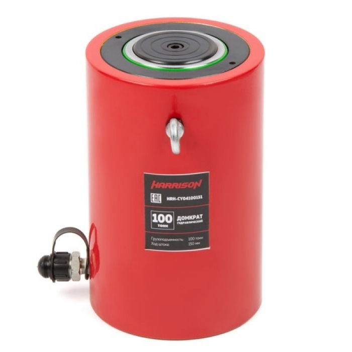 Домкрат грузовой гидравлический Harrison HRH-CY04100151, 100 тонн предназначен для подъема и перемещения грузов при проведении монтажно-демонтажных работ в различных отраслях промышленности. Обладают повышенной грузоподъемностью и продолжительным сроком службы. Это достигается за счет применения высокопрочных сталей, современных опорно-уплотнительных элементов и рабочего давления до 700 бар. Быстроразъемные соединения (БРС) позволяют держать домкрат в постоянной готовности к работе и предотвращают утечки рабочей жидкости из полости домкрата.