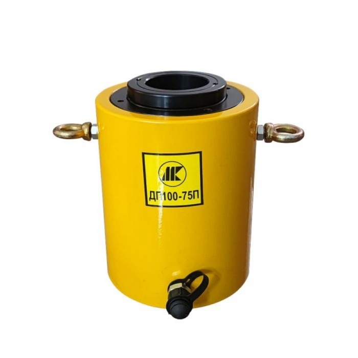 Домкрат с полым штоком ДП100-75П (c пружинным возвратом штока) предназначен для использования в качестве составной части прессового оборудования и различных приспособлений, для запрессовки и выпрессовки деталей, установленных с натягом, для натяжения арматуры и канатов.