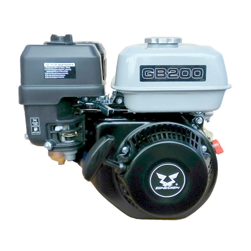 Бензиновый четырехтактный двигатель Zongshen GB200FB имеет рабочий объем 196 куб. см. и мощность 4,8 кВт (6,5 л.с.), систему газораспределения с верхним расположением клапанов OHV, принудительное воздушное охлаждение и горизонтальное расположение коленчатого вала диаметром 19,05 мм (метрический тип вала).