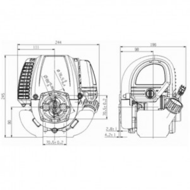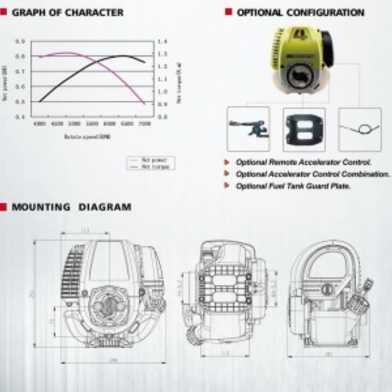 Этот двигатель является идеальной заменой для 2-х тактного двигателя на различном оборудовании, имеет легкий запуск и низкий уровень шума, высокое качество контсрукционных материалов и компонентов, низкий расход топлива и масла.
