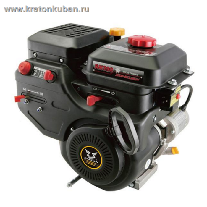 Бензиновый четырехтактный двигатель Zongshen SN390 с рабочим объемом 383 куб.см. Двигатель с верхним расположением клапанов OHV. Объем бака составляет 4 л. А также оснащен системой декомпрессии и транзисторным зажиганием. Zongshen SN390 выполнен из высококачественных материалов и рассчитан на длительный период использования. Серия SN предназначена для снегоуборщиков. Двигатели данной серии легко заводятся зимой. Также SN390 оснащен электрическим стартером.