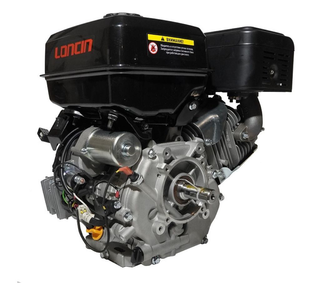 Двигатель Loncin LC192F (A type) D25 7А оснащен масляным насосом, датчиком давления масла и масляным фильтром. На данной модели используется резьбовая крышка топливного бака, для большего удобства пользования крышка крепится к баку с помощью цепочки. Двигатель оборудован встроенной катушкой освещения мощностью 7 Ампер и выпрямителем-стабилизатором.