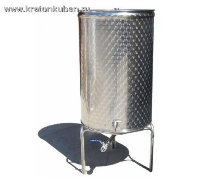 Емкость из нержавеющей стали 500 литров с пневмокрышкой и пылезащитной крышкой и коническим дном в комплекте для бурного брожения (первого) и для тихого, а также для хранения и созревания продукта.