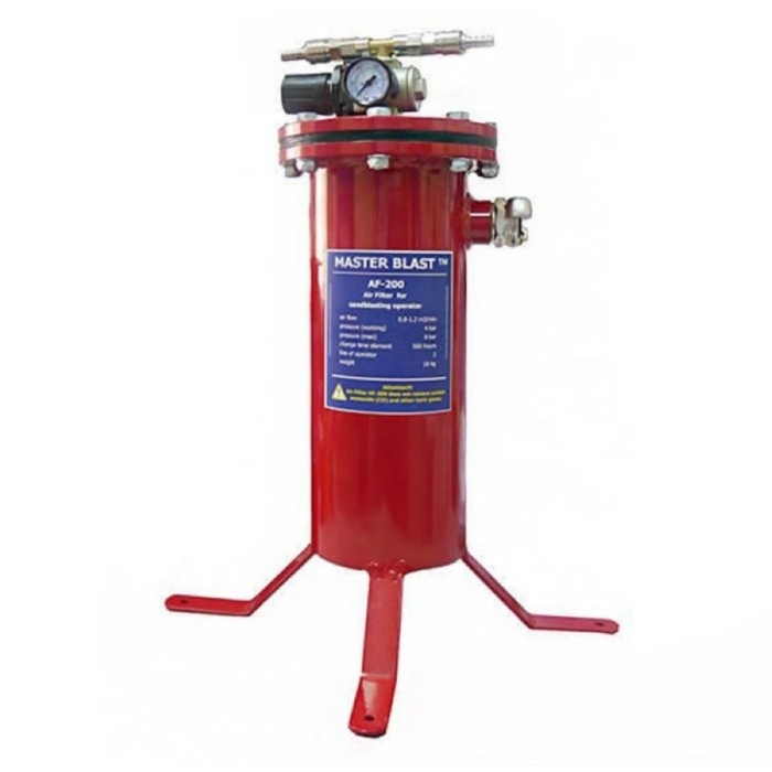 Воздушный фильтр с угольным фильтроэлементом Мастер-Бласт — ппарат обеспечивает удаление из воздуха жестких частиц размером до 0,5 мкм, а также аэрозольные включения масла и водяного пара. Предупреждение! Фильтр пескоструйщика AF-200 не обеспечивает удаление угарного и других отравляющих газов, поэтому использовать его для этих целей запрещается.