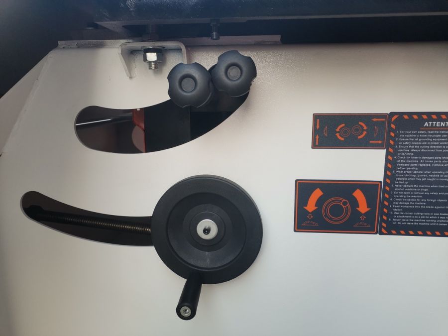 - Удобная настройка работы подрезной и основной пил на боковой стенке станка. Станок оснащен смазочным устройством.