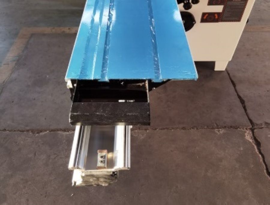 - Поперечная линейка – телескопическая, выполнена из качественного многогранного профиля, шкала спрятана внутри профиля, флажковые упоры имеют жесткую фиксацию. Сама линейка жестко крепиться к поддерживающему столу. Все это позволяет станку сохранять точно установленные размеры при работе и перенастройках.