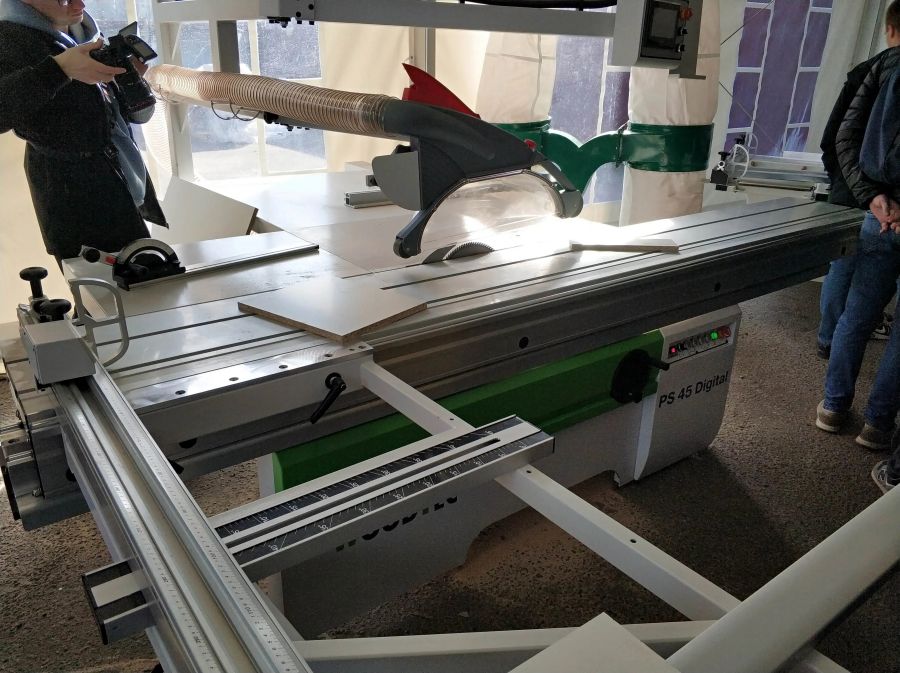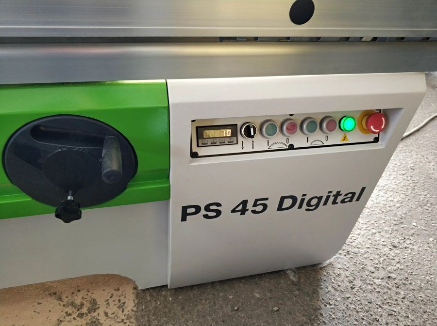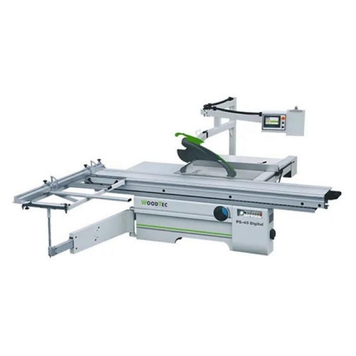 Форматно-раскроечный станок WoodTec PS 45 Digital – предназначен для продольного, поперечного и углового раскроя плитных материалов (МДФ, ДСтП, ДВП и клееных щитов), облицованных и ламинированных, а также заготовок из массивной древесины, с предварительной подрезкой нижней кромки для исключения сколов. Возможен как штучный, так и пакетный раскрой заготовок, а также наклон пильного узла до 45° в вертикальной плоскости.
