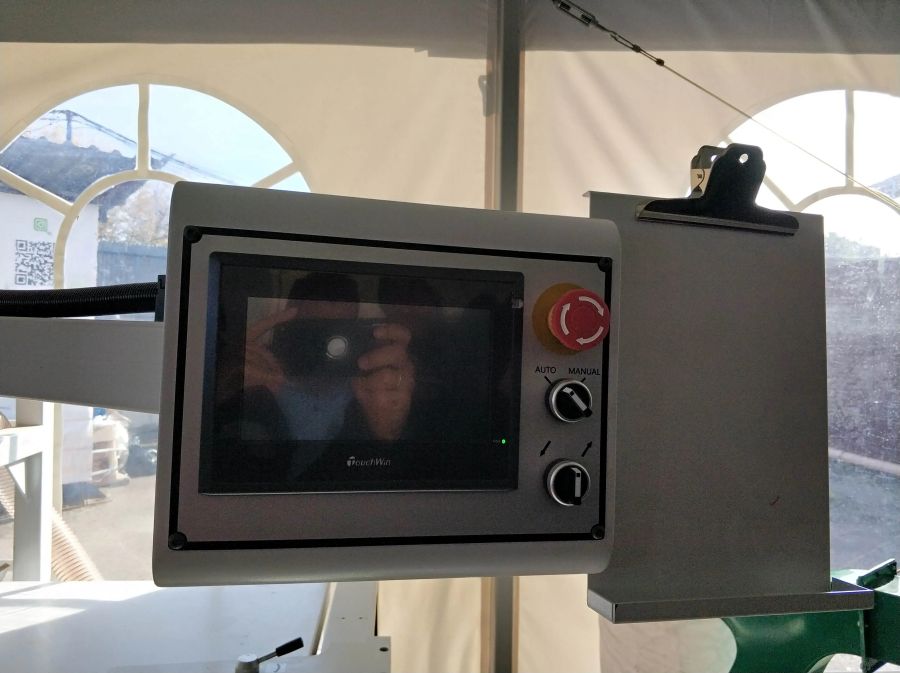 - Управление параллельным упором - дисплей Touch-Screen от одного из ведущих производителей электроники и систем управления позволяет управлять настройкой ширины раскроя с пульта, который эргономично расположен на уровне глаз оператора. Такое решение позволяет увеличить производительность станка за счет того, что нет необходимости оператору каждый раз при выставлении размера переходить к оптической линзе за каретку.