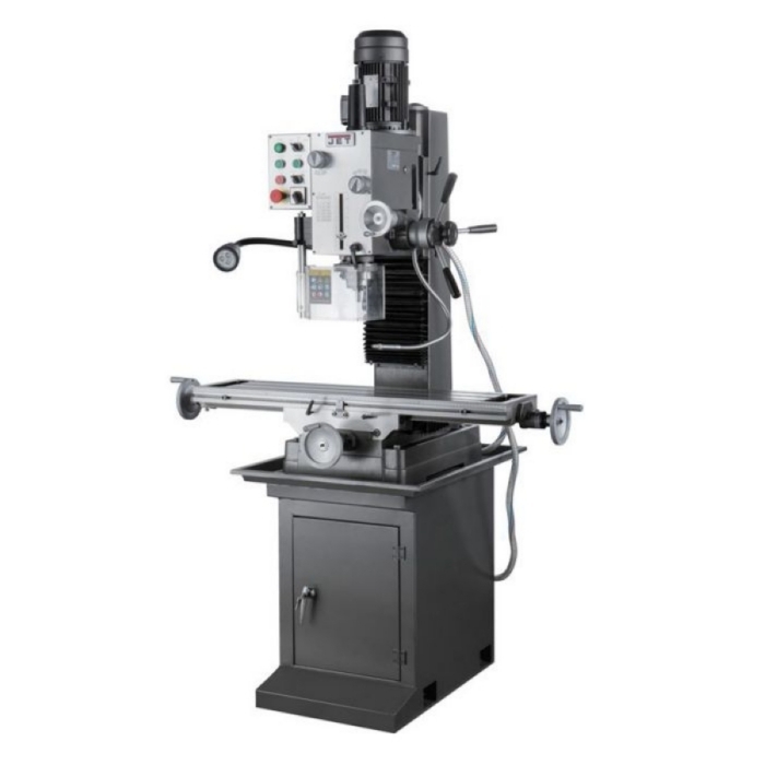 Фрезерно-сверлильный станок Jet JMD-45L - рассчитан на выполнение полного спектра фрезерных и сверлильных работ, нарезания резьбы, выполнения других технологических операций. Оборудование разработано для индивидуального использования, пригодно для производственного цикла. Мощный двигатель и сама конструкция станка рассчитаны на длительные режимы обработки. Станок имеет мощную литую станину из серого чугуна. Массивная стойка дополняет прочность и устойчивость всей конструкции.