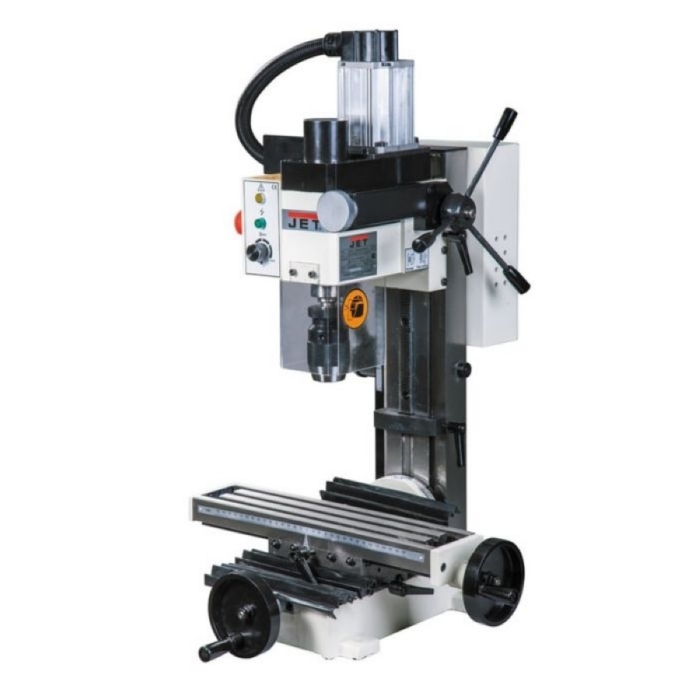 Фрезерно-сверлильный станок JET JMD-X1L представляет собой современное оборудование для выполнения работ по металлу. Для удобства оператора основные элементы управления вынесены на переднюю панель агрегата. Есть кнопка аварийного отключения. Коллекторный двигатель машины имеет плавную регулировку числа оборотов для аккуратного выполнения работ по сверлению и фрезеровке в наиболее подходящем режиме. Корпус агрегата выполнен из серого чугуна, что снижает уровень вибрации в процессе эксплуатации.