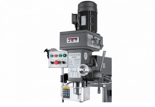 На станке JMD-939GV DRO можно производить сверление отверстий до диаметра 30 мм и фрезеровать концевыми фрезами до диаметра 20 мм. На станке установлен вертикальный шпиндель со скоростью вращения в диапазоне 115-1750 об/мин. Расстояние между вертикальным шпинделем и столом от 85 до 420 мм, вертикальным шпинделем и поверхностью колонны от 250 до 650 мм. Выбор скоростей вертикального шпинделя осуществляется с помощью механической коробки скоростей, расположенной с правой стороны станка.