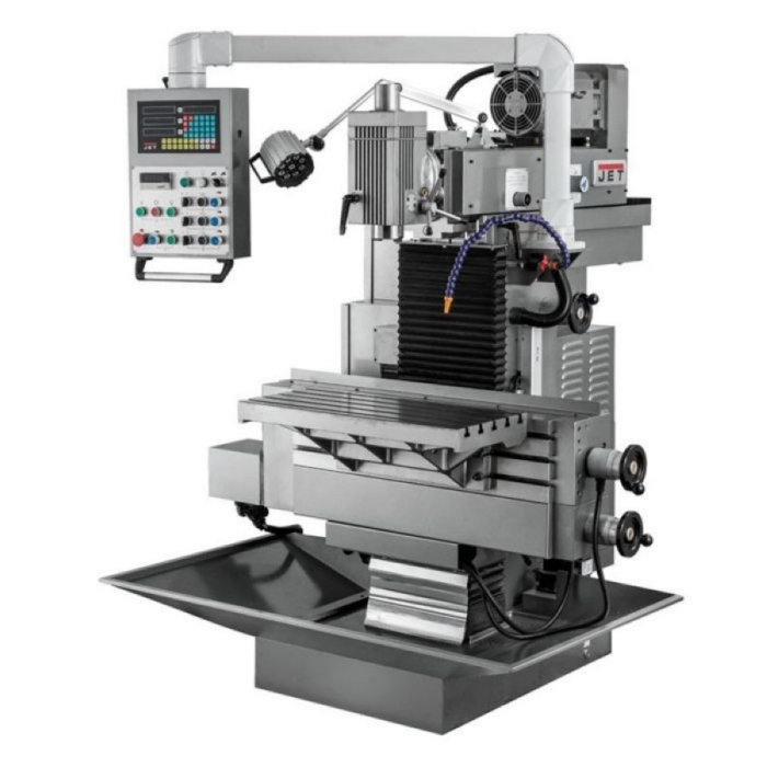 Фрезерный станок Jet JUTM-1230 Servo DRO – мощный и производительный станок в линейке оборудования компании. Он удовлетворит требованиям самого взыскательного заказчика и рассчитан на тяжелые условия эксплуатации и длительные нагрузки. Станок предназначен для всевозможных видов фрезерной обработки, сверления, растачивания и прочих операций в любом координатном направлении и может достигнуть высокой точности. Имеет горизонтальный и вертикальный рабочие столы, что существенно расширяет круг задач и операций при производстве оснастки, инструментов, приспособлений, пресс-форм и других деталей сложных форм, мелкими сериями на механообрабатывающих, инструментальных и ремонтно-механических участках.