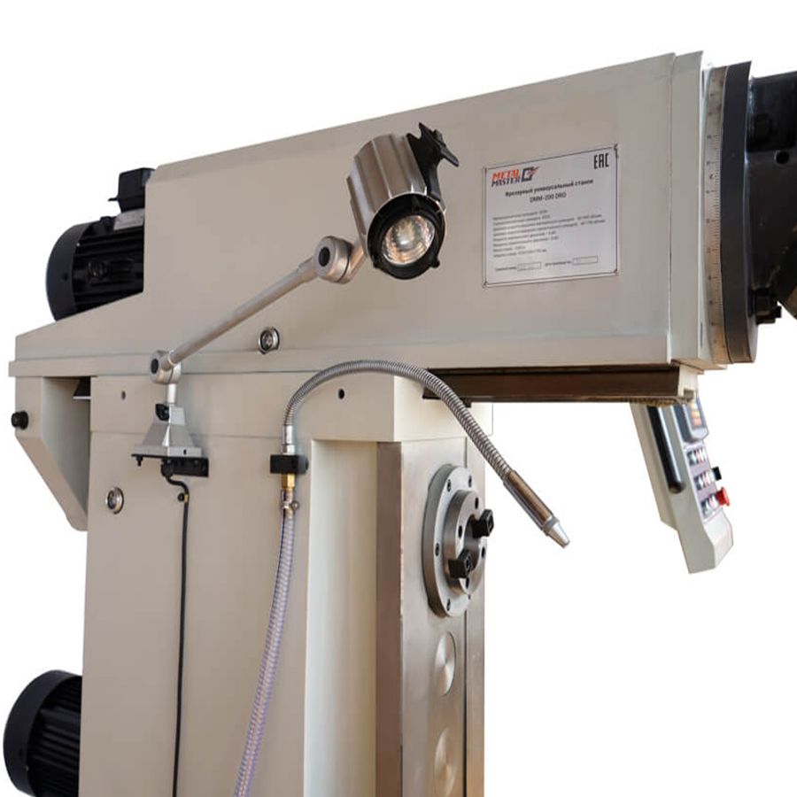 Фрезерный универсальный станок Metal Master DMM-200 DRO широкоуниверсальный фрезерный станок промышленного типа. Благодаря наличию вертикального и горизонтального шпинделей с независимыми приводами, большеразмерному поворотному столу с высокой допустимой нагрузкой, а также наличию трехосевых УЦИ и двигателей ускоренной подачи, станок может применяться для изготовления широкой номенклатуры изделий из металла, а также для изготовления корпусных деталей.