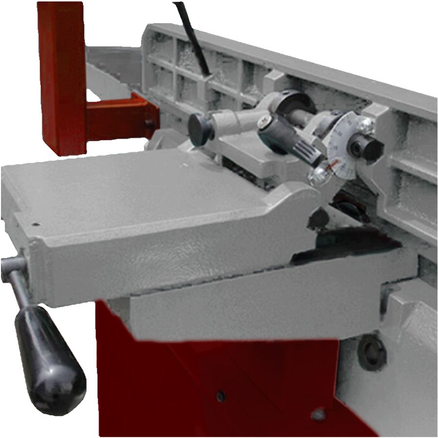 - Чугунный параллельный упор специальной конструкции имеет увеличенную длину для обеспечения постоянного контакта по всему резу. Упор смонтирован по центру и работает как заднее ограждение на узких резах.