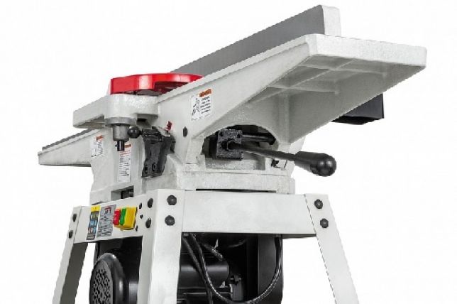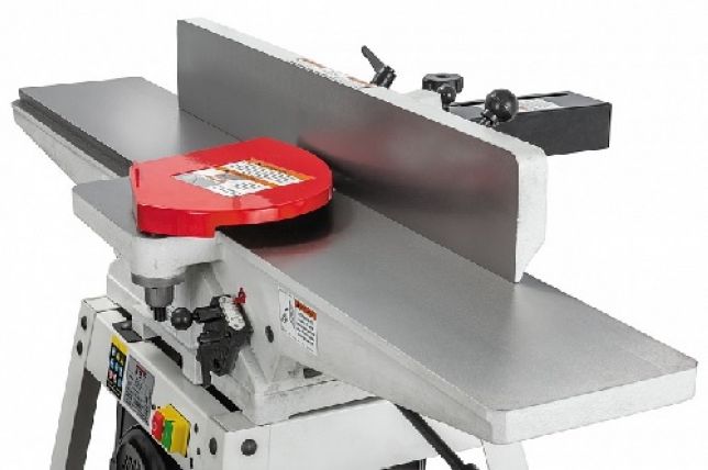 Фуговальный станок Jet JJ-6 OS – станок с длинными чугунными столами для любительского применения. Имеет классический дизайн с регулировкой высоты столов по наклонным направляющим. Базируется на открытой подставке, в пространстве которой расположен асинхронный однофазный двигатель. Привод ножевого барабана одним клиновым ремнем. Регулируемый фуговальный упор и его кронштейн сделаны из массивных чугунных отливок. Сдвижной защитный экран – алюминиевый. Стружка удаляется через 100-миллиметровый патрубок и кожух, расположенные снизу станка.