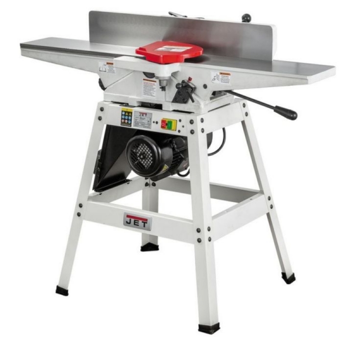 Фуговальный станок Jet JJ-6HH OS — фуговальный станок для любительского применения с длинными чугунными столами и сегментированным вылом helical. Имеет классический дизайн с регулировкой высоты столов по наклонным направляющим. Базируется на открытой подставке, в пространстве которой расположен асинхронный однофазный двигатель. Привод ножевого барабана одним клиновым ремнем. Регулируемый фуговальный упор и его кронштейн сделаны из массивных чугунных отливок. Сдвижной защитный экран алюминиевый. Удаление стружки производится через 100-миллиметровый патрубок и кожух, расположенные снизу станка.