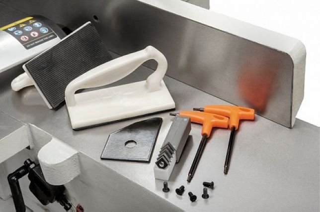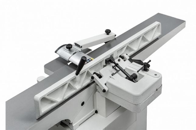 Фуговальный станок Jet JJ-8HH-M — фуговальный станок с длинными чугунными столами и шириной строгания 200 мм, штатно оборудованный ножевым валом helical.