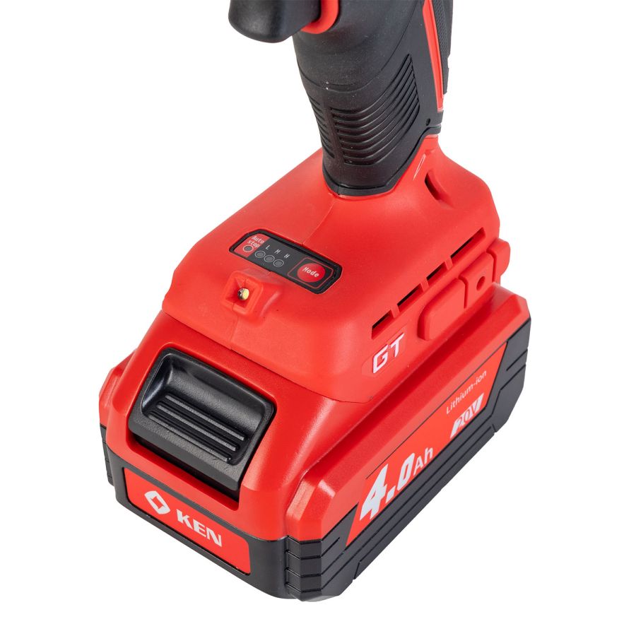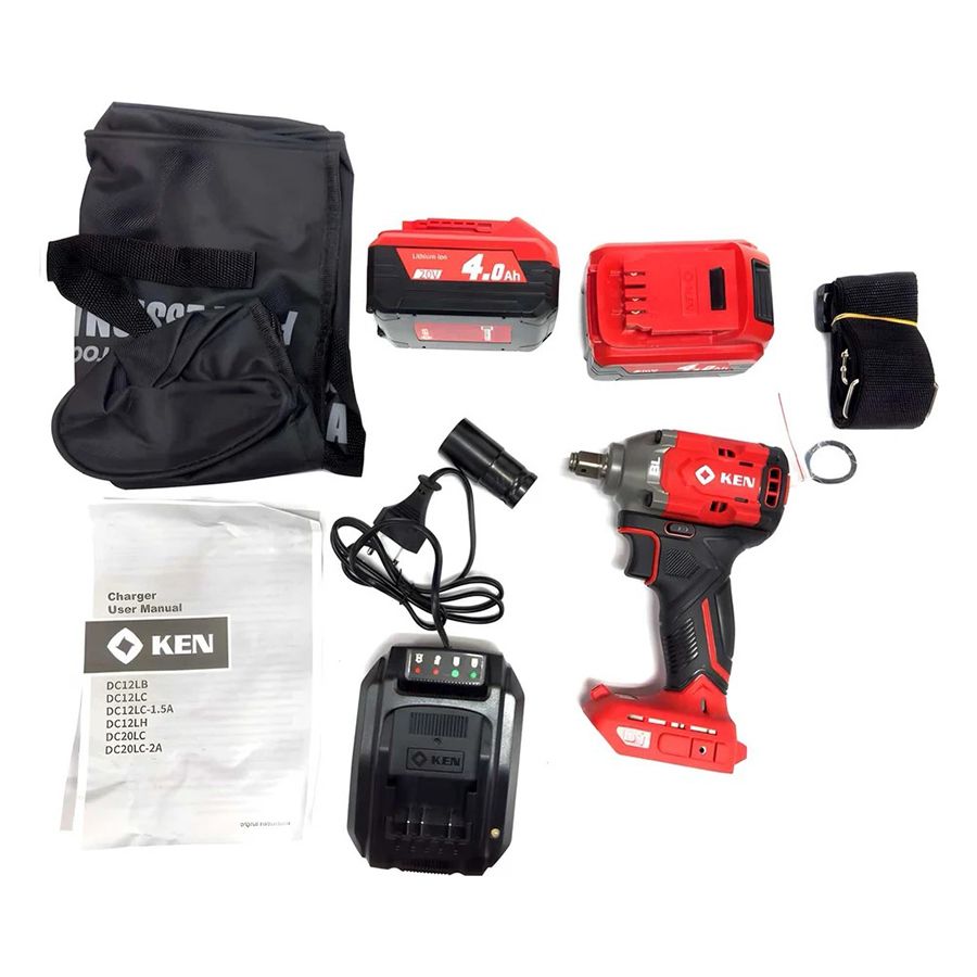 Аккумуляторный бесщеточный гайковёрт KEN BL7520-40B — это мощный инструмент, рассчитанный на выполнение высоконагруженных работ. Модель комплектуется зарядным устройством с временем зарядки 2 часа, двумя литий-ионными аккумуляторами ёмкостью 20 В / 4 А*ч, ремешком для удобства переноски и "O"-кольцом.