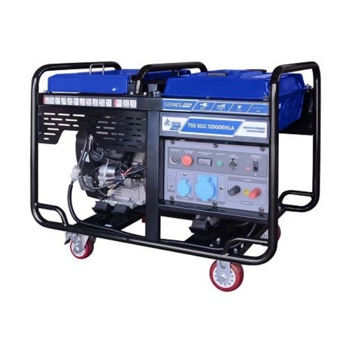 Генератор бензиновый TSS SGG 12000EHLA - профессиональная серия бензиновых генераторов с высококачественными двигателями увеличенного ресурса LONCIN. Бензогенератор TSS SGG 12000EHLA предназначен для выработки электроэнергии с основными характеристиками: напряжение - 220 вольт, частота 50 Гц и номинальной мощностью 12 кВт. Модель оснащена колесным комплектом , для удобства передвижения, отличается от других моделей увеличенным топливным баком 40 литров.