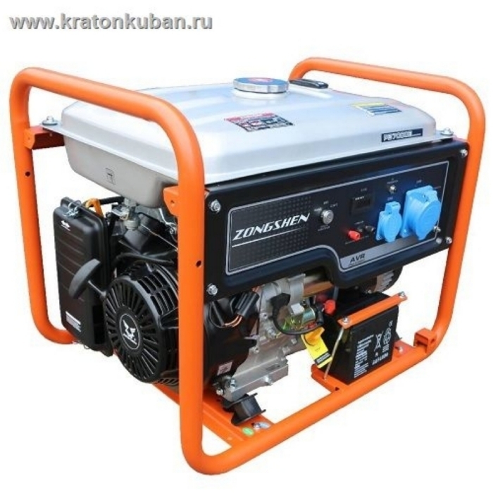 Бензиновый генератор с электрозапуском Zongshen PB 7000 E. Данный генератор относится к однофазным генераторам. Однофазный бензогенератор Zongshen PB 7000E оснащен регулятором напряжения AVR, который обеспечивает стабильное выходное напряжение. На корпусе бензогенератора установлено две розетки для подключения потребителей.