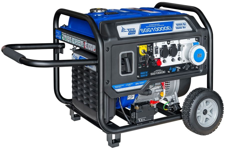 Генератор инверторный ТСС SGG 10000Ei бензиновый - с электростартером и разъемом для подключения блока автоматики, вырабатывает электричество с высокой точностью частоты и напряжения.Предназначен для подключения к нему потребителей общей максимальной мощностью до 9 кВт. Позволяет подключать к генератору как обычных потребителей, так и точное электронное оборудование, например, ноутбуки, LCD-телевизоры или смартфон.