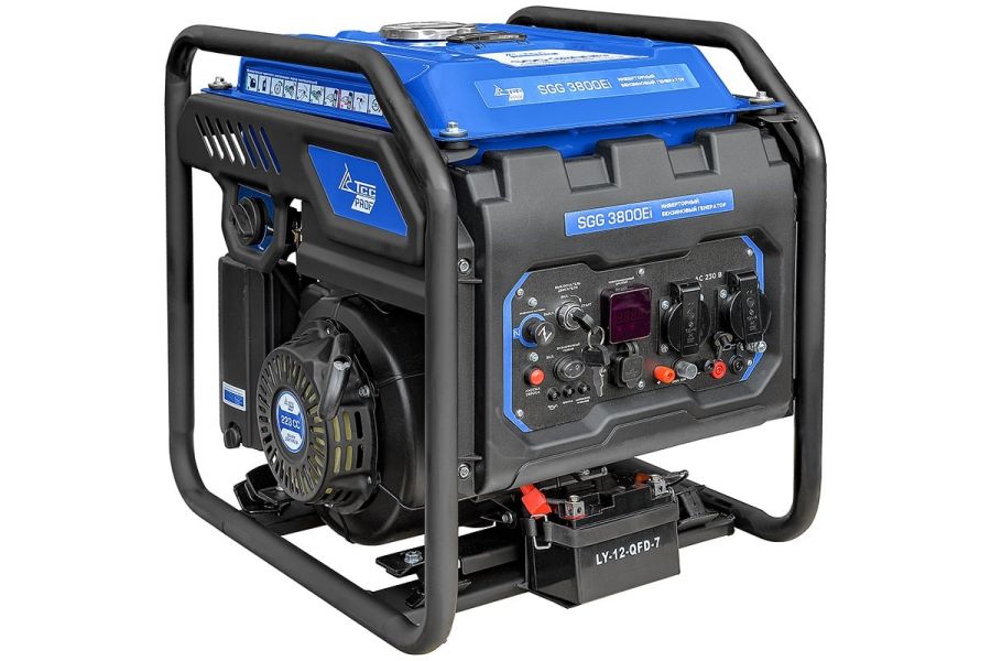 Генератор инверторный ТСС SGG 3800Ei бензиновый,KM170FP - предназначен для подключения к нему потребителей тока общей номинальной мощностью 3,6 кВт. Компактный инверторный генератор с электростартом, предназначен для питания маломощных электроприборов на загородном участке, гаража, уличной торговли, летнего кафе. Выход 12 вольт позволяет подзарядить автомобильный аккумулятор в экстренном случае.