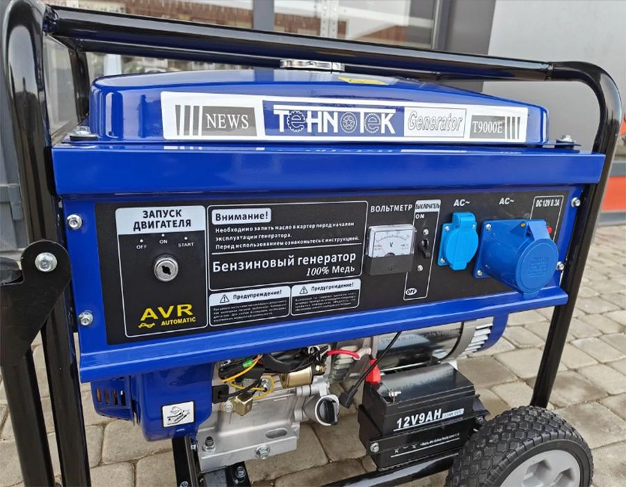 Генератор Tehnotek Т9000Е оснащен ручным стартером, удобными ручками для переноски. Гарантия на Tehnotek Т9000Е составляет 12 месяцев.