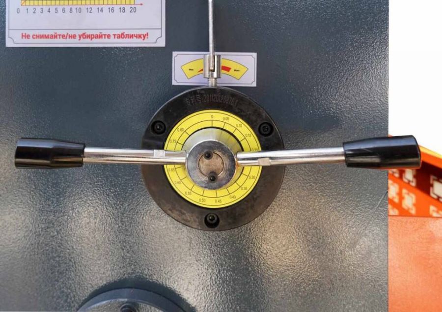 - Манометр и механизм регулировки зазора позволяют быстро настроить машину для работы с необходимой толщиной листа.