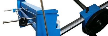 Рабочий стол гильотины снабжен с двух сторон упорами и линейками, облегчающими размещение заготовки. Для поддержки длинных листов гильотина снабжена выдвижным передним упором.