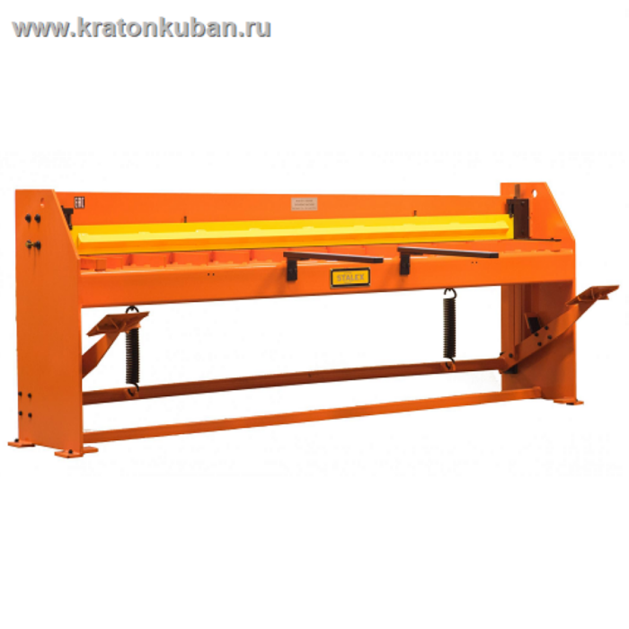 Модель оснащена резаками из высокоуглеродистой стали и механизмом надежного прижима листа. Гильотина имеет ограничитель глубины подачи заготовки до 800 мм и ножную педаль.