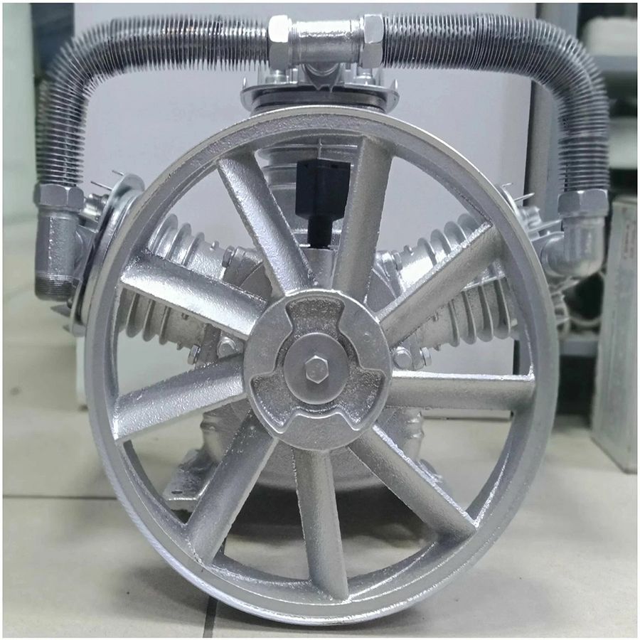 Поршневая голова с ременным приводом Tehnoline S&K Т1500, 300, V3090 для компрессора - трехцилиндровая, одноступенчатая. Данная констукция отличается своей малошумной работой. Голова служит для использования в условиях, где крайне важно создать чистую среду. Она имеет в своем арсенале эффективную систему охлаждения, которая осуществляется за счет алюминиевых радиаторов и трех крыльчаток. Эти два элемента кострукции обеспечивают стабильную работу компрессора даже при высоких нагрузках. Имеет высокую производительность в 1500 литров в минуту и обеспечивает быстрое и эффективное сжатие воздуха. Эта голова компрессорная v-образная и 3-цилиндровая с диаметром поршней 90 мм., с ременным приводом, что обеспечивает низкий уровень шума и вибраций. Тип смазки - масляный, регулировка давления отсутствует.